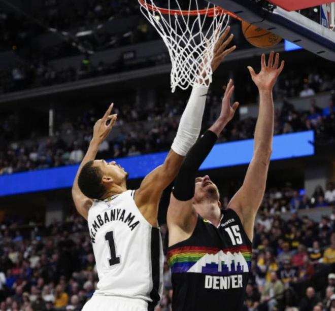 本赛季常规赛,文班亚马64场比赛中场均得到25分11.5个篮板和3.1次助攻;约基奇65场比赛中场均得到27.7分、12.9个篮板和10.7次助攻。
