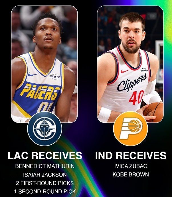 交易回顾:快船送出祖巴茨和科比-布朗,2换5得到马瑟林、以赛亚-杰克逊、2个首轮、1个次轮。